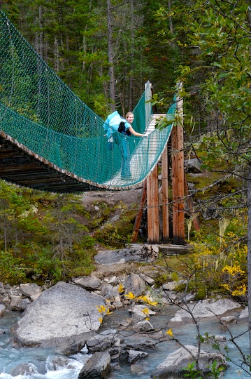 The Indiana Jones Bridge. Again, bridge bunny Alex tests the waters.