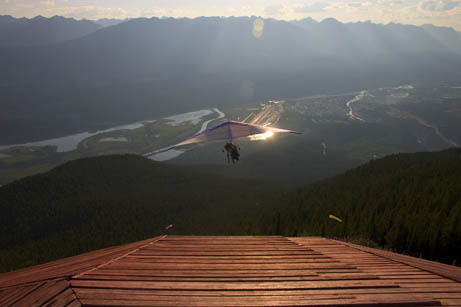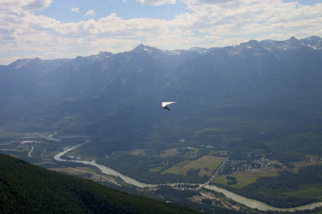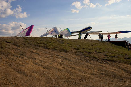 A few of us budding hang glider pilots took a weekend to participate in a course introducing us to mountain flying. With Steve to boot us off the mountain and John to welcome us back to the ground in the landing field (hopefully), we flew from launch, 6400 feet above sea level to the landing field, 3400 feet lower and four kilometres away. An average flight was about fifteen minutes. Thanks to John and Steve our instructors, Taylor and Pam for taking pictures when I was in the air, and Taylor, Pam and Katie for driving.