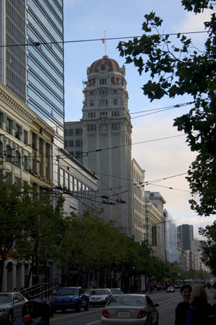 The trip back... this is Market street, a block to the north of the hotel. The building with the dome has a Ross mens store at it's base.