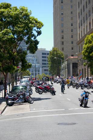 Danny and I arrived in time to catch the gay pride parade. Market street, just north of our hotel turned into something resembling 17th Ave after a Flames game... the rainbow mile: