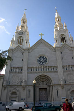 After stopping for Chinese food (the waitress made absolutely sure I knew I had ordered kidney) we continued down the other side of the hill, passing through an Italian neighborhood, St. Peter and Paul's Cathedral and arriving at Fisherman's Wharf.