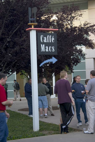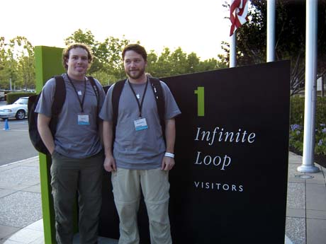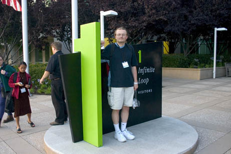 Danny, Jaret and I by the 1 Infinite Loop sign (while we were in line waiting to get into the Company Store). This is why they keep me behind the camera most of the time.
