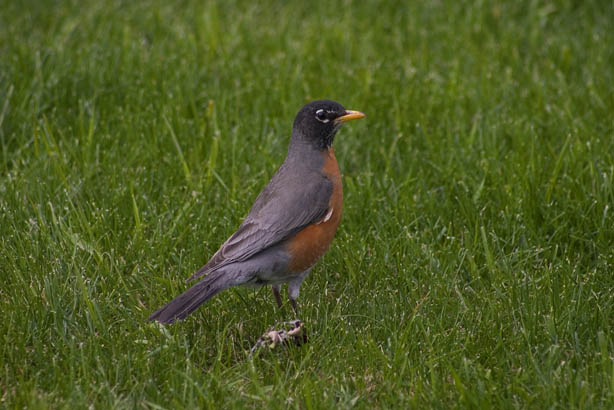 Robin on grass.