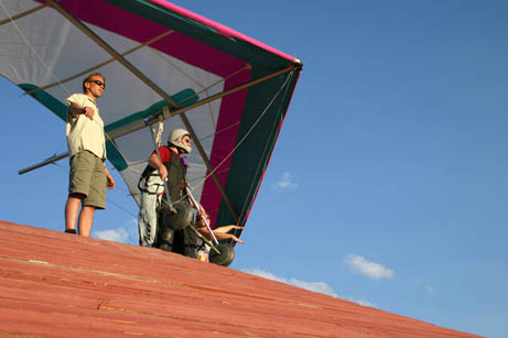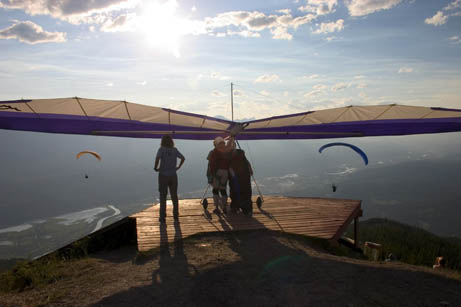 Pam and John wait for a couple of paragliders to clear the area so they can launch on a tandem flight.