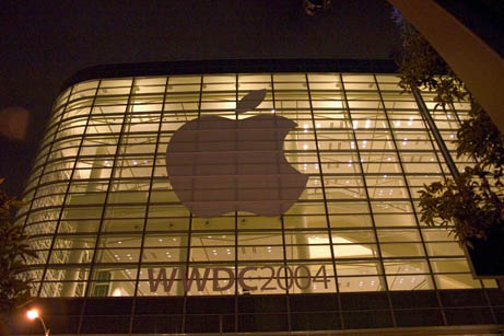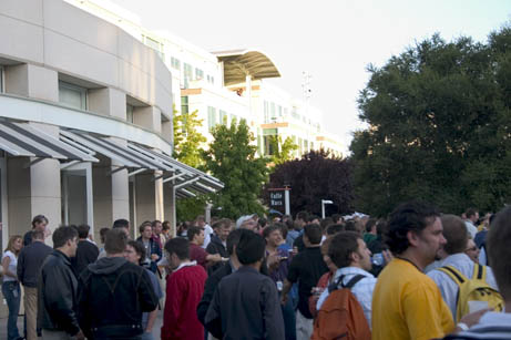 Inside... geeks eating. There were quite a few notebooks in evidence here too (we left ours at home and brought cameras instead). This is the quad at the heart of the Apple campus.