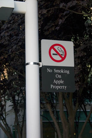 Apple doesn't like smokers much. They have a tiny little tent at the side of one of the parking lots for them.