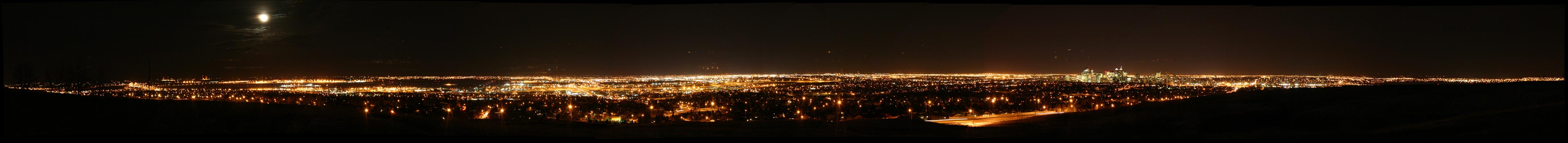 | Larger night panorama of Calgary from Nose Hill including Calgary International Airport, downtown and the University of Calgary. |