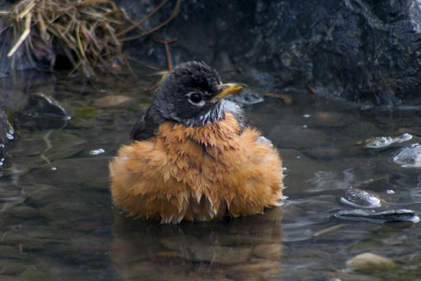 Robin having a bath.